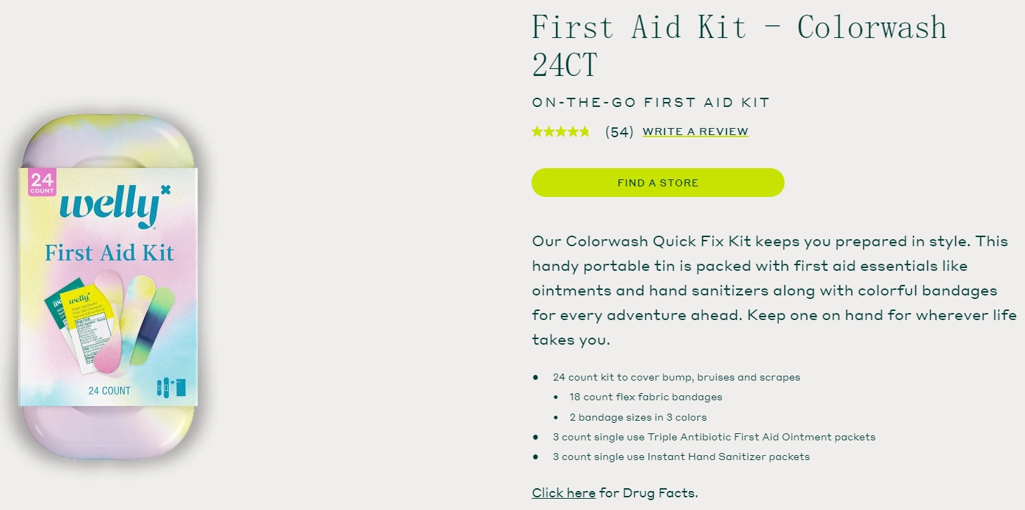 急救包:Welly推出的急救包,适用于各种生活场景,同时外观的美观性和可携带性,也使其更容易被消费者所接受。而急救包,实际上也是另外一种意义上的捆绑销售,所以其不仅能够促进转化,还能提高平均客单价。