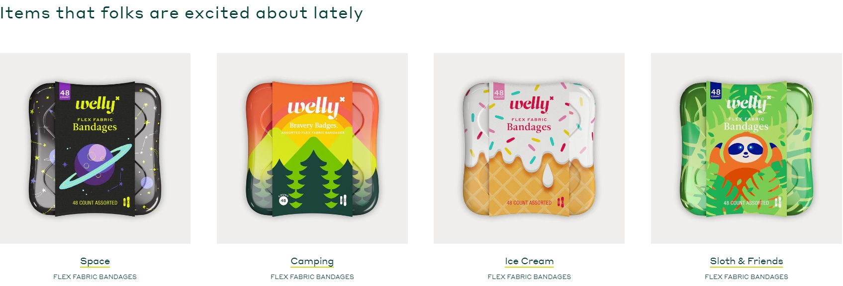 差异化定位:与主打功能性的传统医疗品牌不同,Welly聚焦于多彩设计、趣味包装和积极健康的品牌理念。Welly以“健康、乐观和时尚”的品牌形象切入,将创可贴打造为个性表达的一部分,为产品和品牌注入了年轻活力。