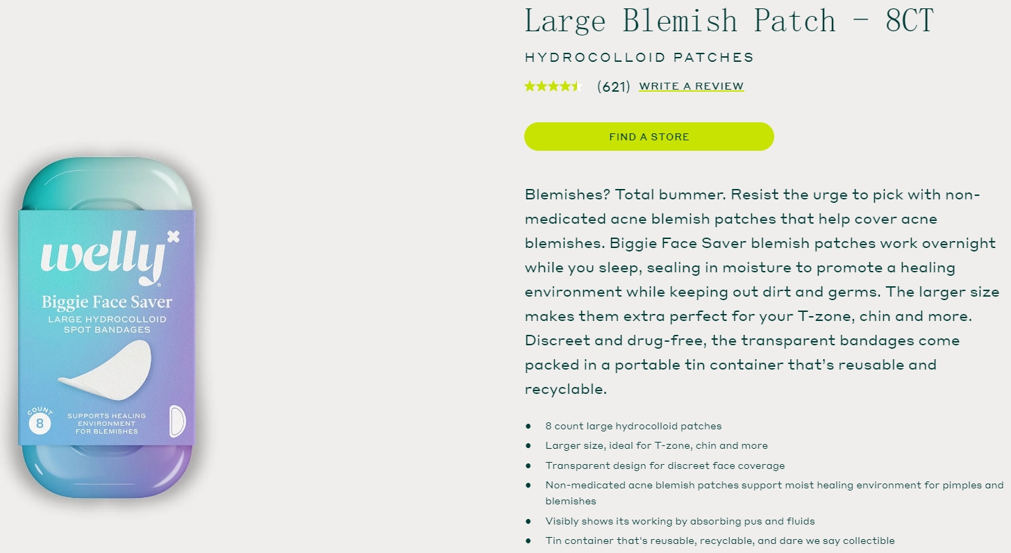 产品线拓展:拓展产品线,是实现破圈突围的最佳策略之一,Welly通过推出非药物类的痘痘贴,使其品牌逐渐从单一的伤口护理延展至皮肤护理领域。透明的设计、便携可循环的金属包装,同样也切中了注重便利和可持续消费的年轻人需求。